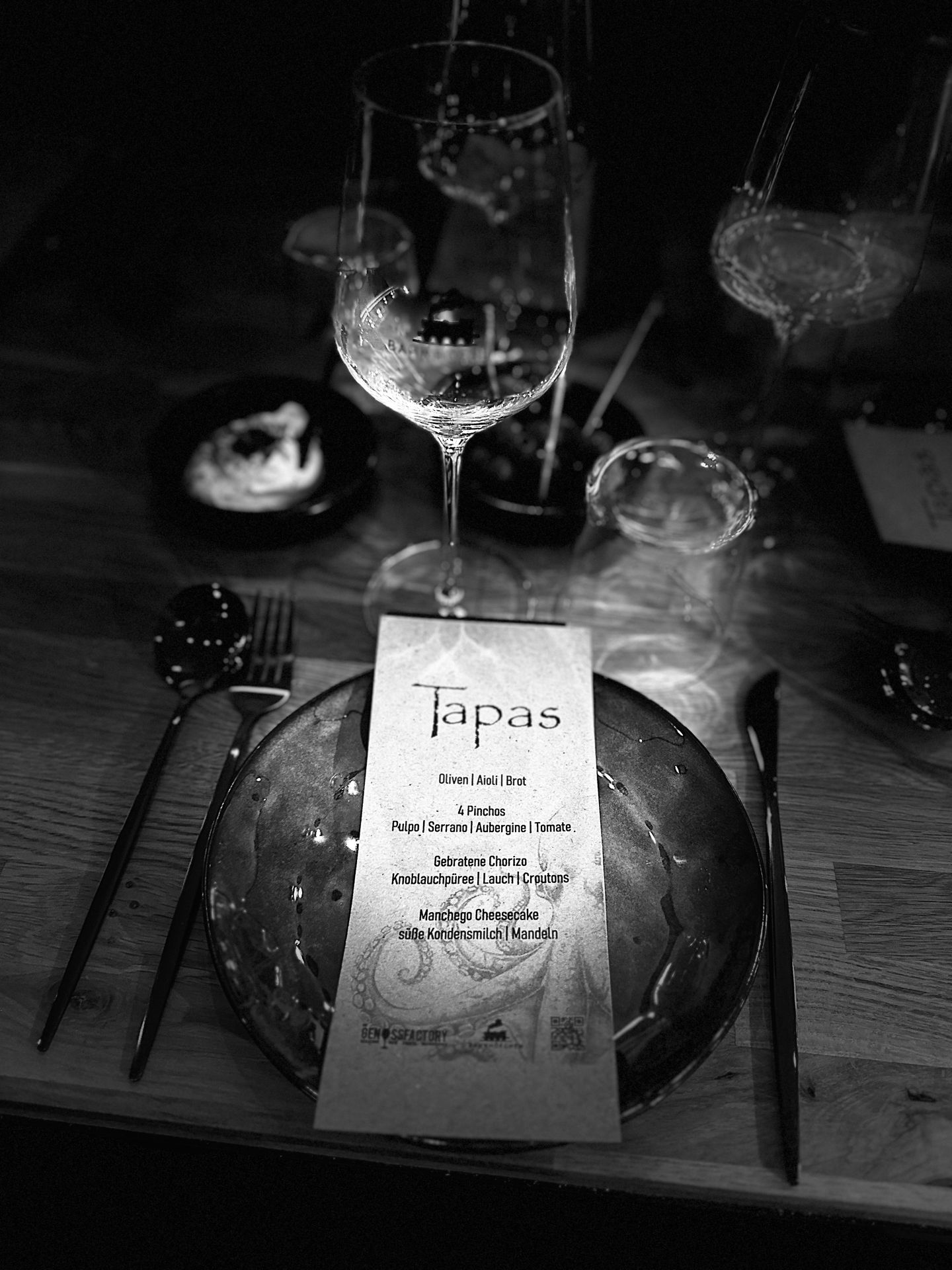 Das Herzstück des Abends waren die köstlichen Tapas, frisch zubereitet und liebevoll angerichtet. Von spanischen Klassikern bis zu kreativen Variationen mit regionalen Zutaten – für jeden Geschmack war etwas dabei. Die kleinen Häppchen luden dazu ein, verschiedene Kombinationen mit den Weinen zu entdecken.